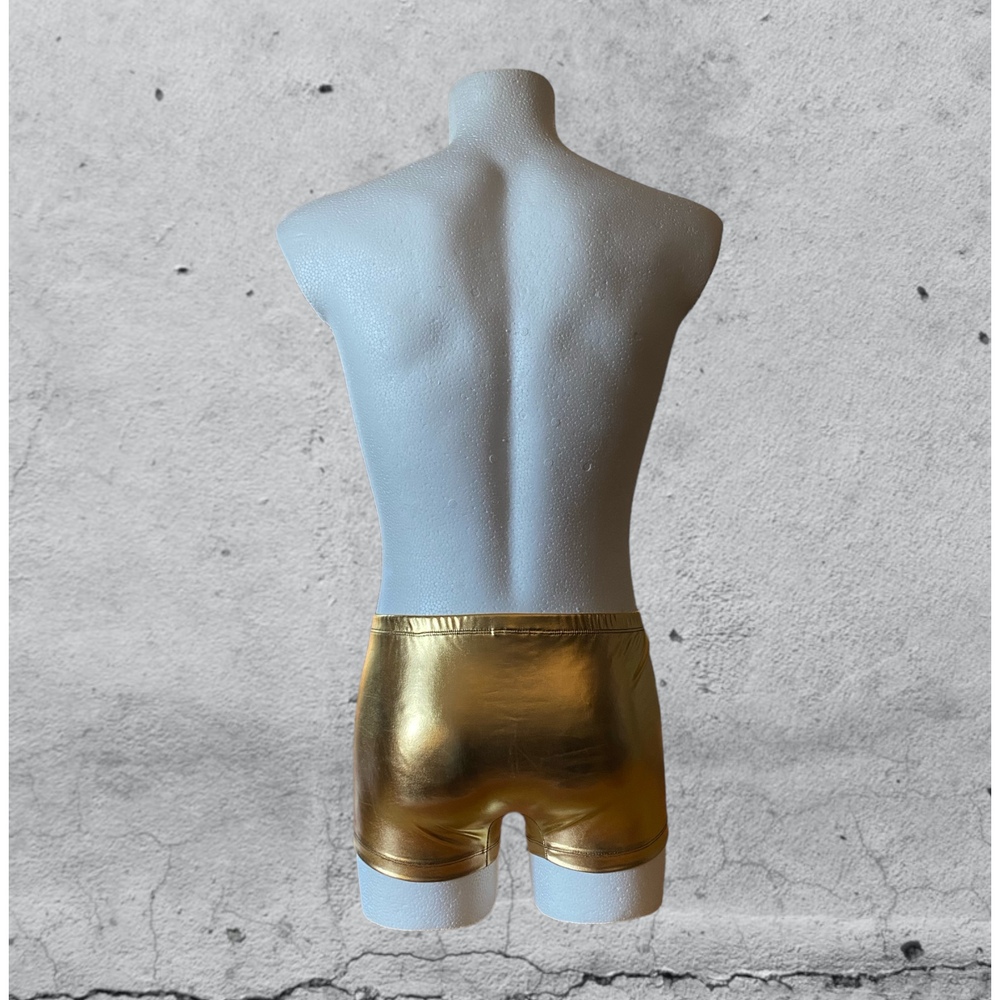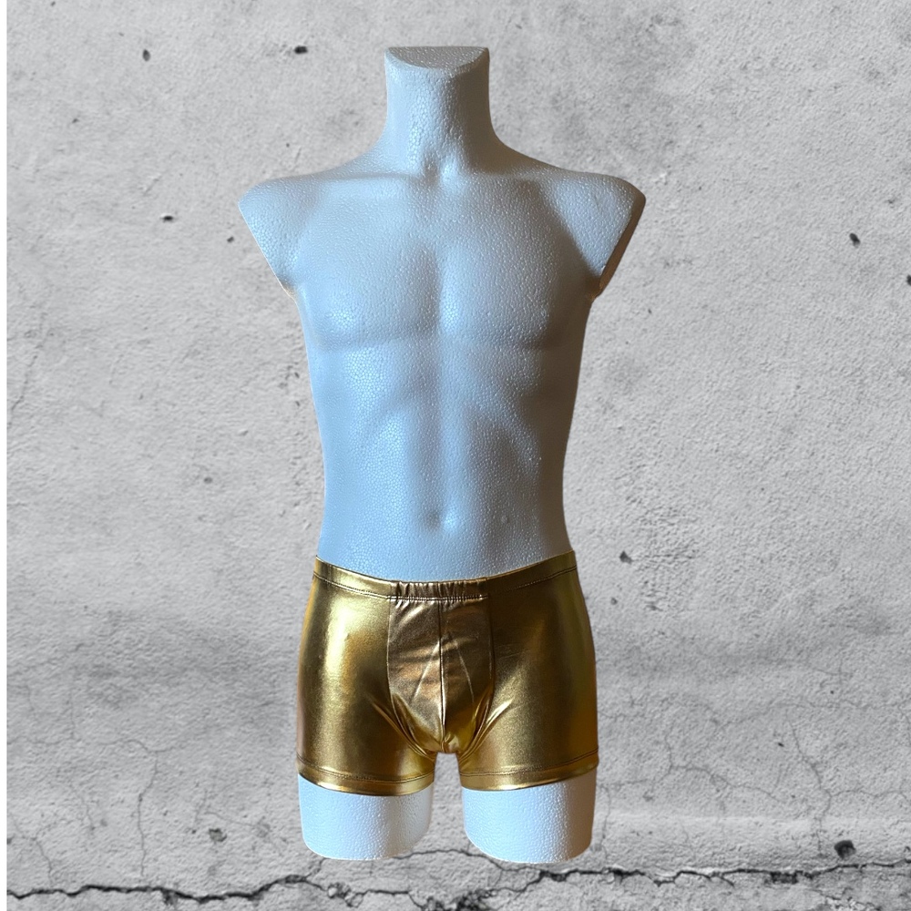 Diese Boxershorts in Gold, handgefertigt in Leipzig, ist dein optimaler Party-Begleiter! Durch den komfortablen Schnitt sitzt sie ungemein bequem. Dank des Stretchjerseys passt sie sich ideal deiner Körperform an. Der goldene Stoff gibt der Boxershorts das gewisse Etwas und macht dich zum absoluten Hingucker!