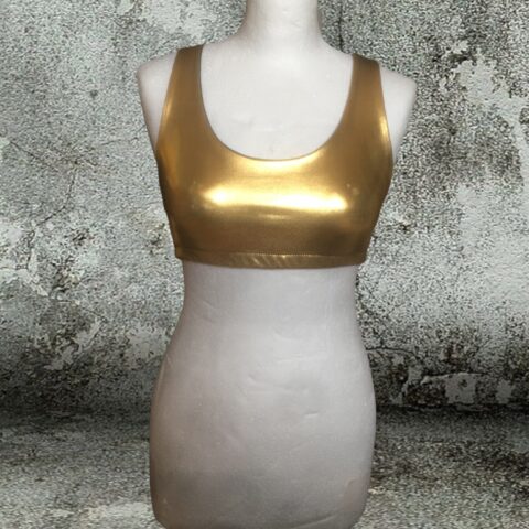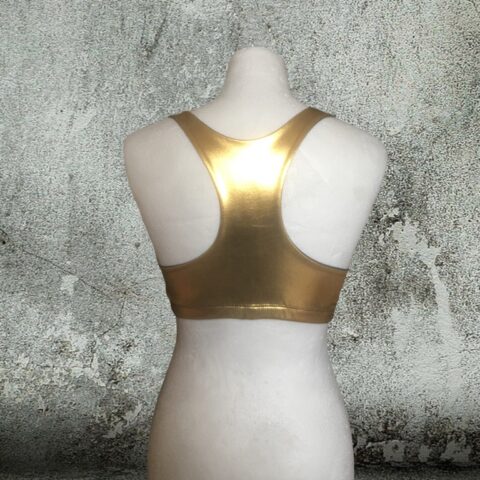 Das Bustier Tina in Gold, handgefertigt in Leipzig, ist dein optimaler Festival-Begleiter! Durch den komfortablen Schnitt sitzt es ungemein bequem. Tina ist durch die breiten Träger auch ideal für größere Cups geeignet. Der goldene Jerseystoff fällt direkt ins Auge und schwarzer Baumwollstoff auf der Innenseite sorgt dafür, dass das Bustier angenhem auf der Haut liegt. Der goldene Stoff gibt dem Bustier das gewisse Etwas und macht dich zum absoluten Hingucker!