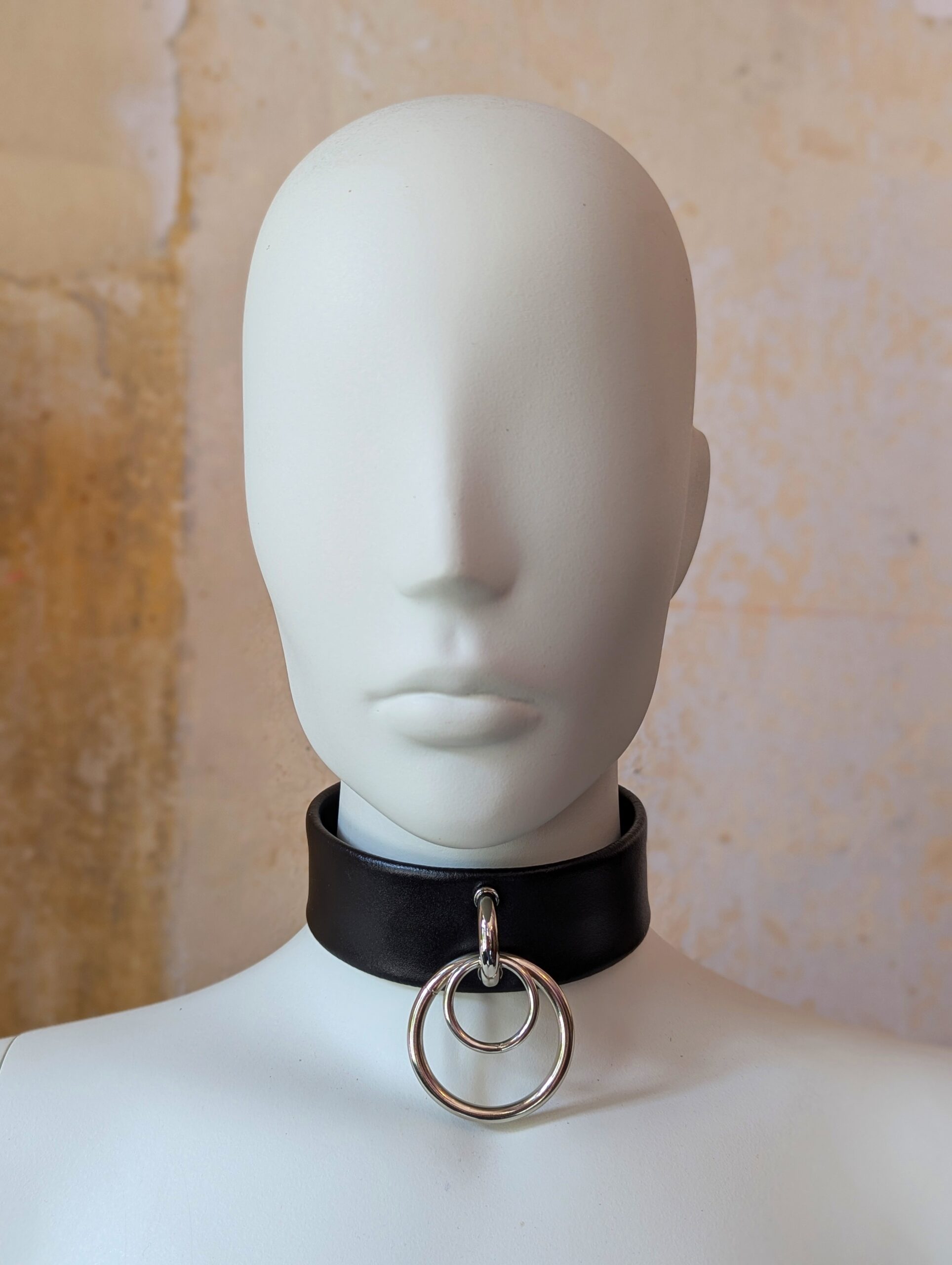 Dieser Double Ring Choker aus Leder ist ein hochwertiges kinky Accessoires in Schwarz. Der Choker wurde mit Sorgfalt handgefertigt in Jemgum (Leer/Ostfriesland).