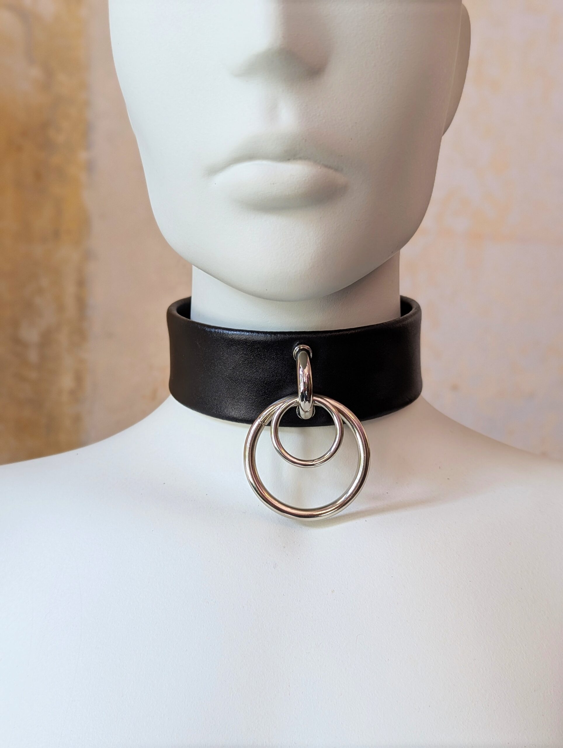 This leather double ring choker is a high-quality kinky accessory in black. The choker has been carefully handcrafted in Jemgum (Leer/East Frisia).