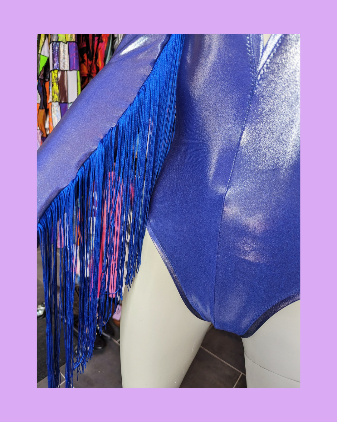 Der Fransen-Bodysuit dark blue, handgefertigt in Berlin, ist dein perfektes Festival- oder Partyoutfit! Der glitzernde Stoff reflektiert wunderbar das Licht und die knallbunten Fransen umspielen deine Bewegungen. Mit diesem extravaganten Look bist du der absolute Hingucker auf der Tanzfläche!