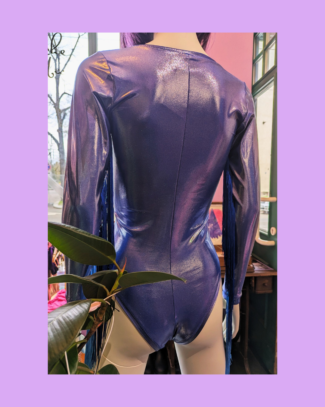 Der Fransen-Bodysuit dark blue, handgefertigt in Berlin, ist dein perfektes Festival- oder Partyoutfit! Der glitzernde Stoff reflektiert wunderbar das Licht und die knallbunten Fransen umspielen deine Bewegungen. Mit diesem extravaganten Look bist du der absolute Hingucker auf der Tanzfläche! . . . . The fringed bodysuit dark blue, handmade in Berlin, is your perfect festival or party outfit! The glittering fabric wonderfully reflects the light and the bright fringe accents swirl around your movements. With this extravagant look, you’ll be the absolute showstopper on the dance floor!
