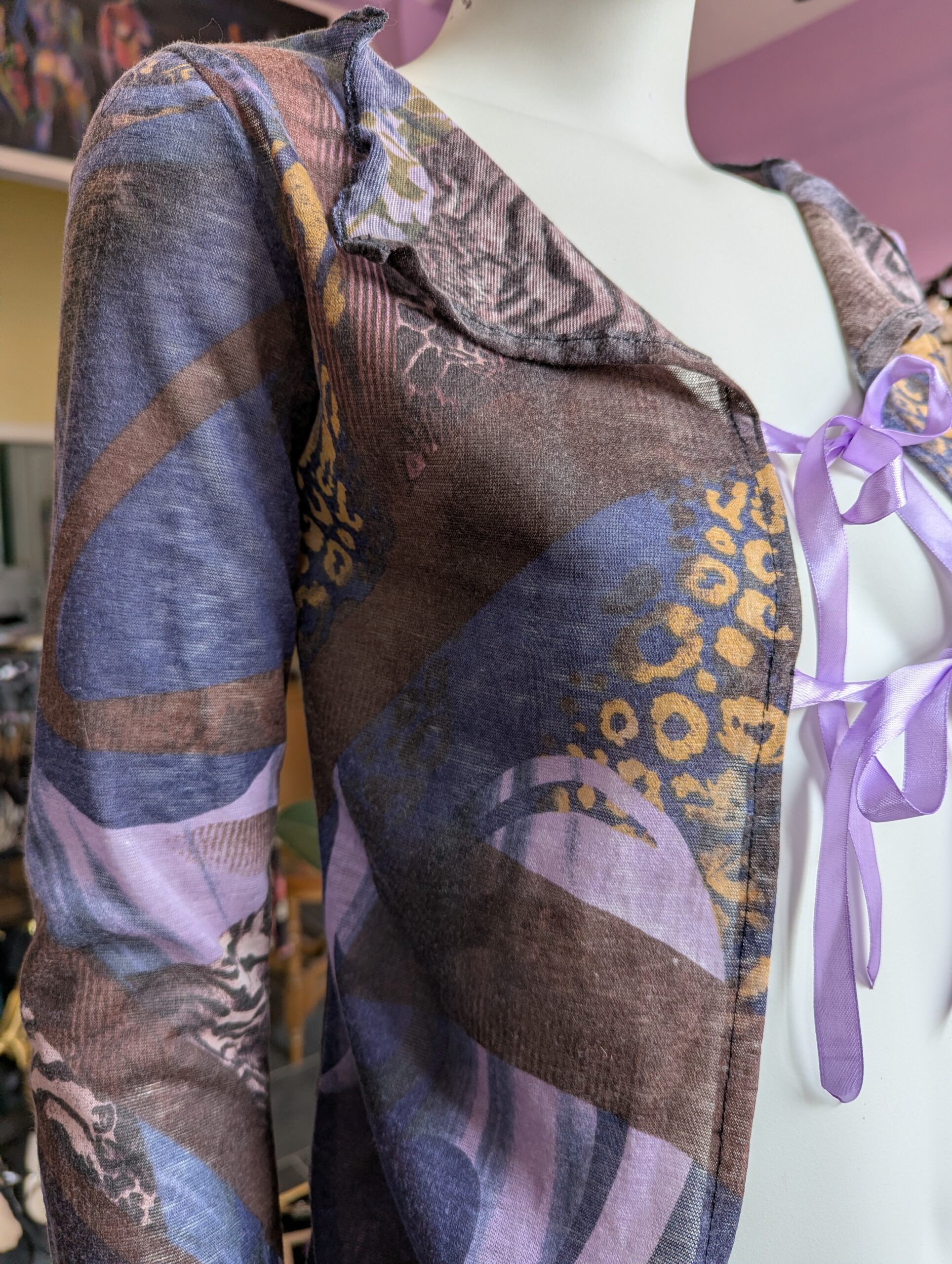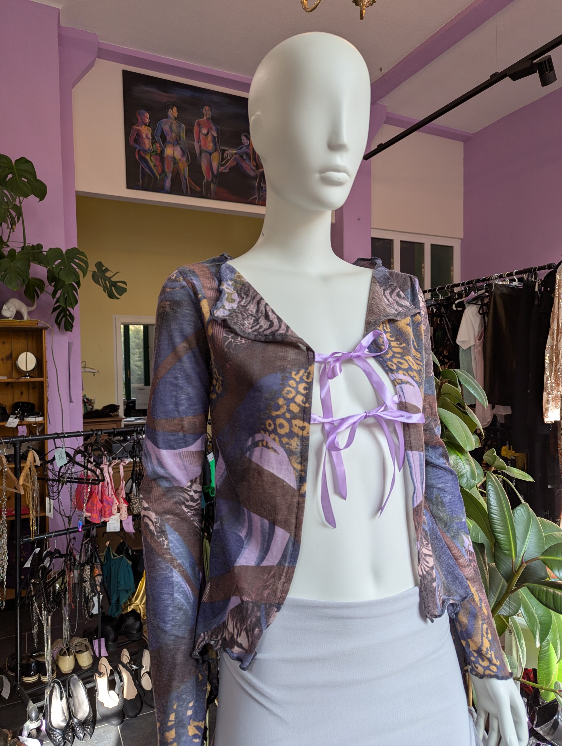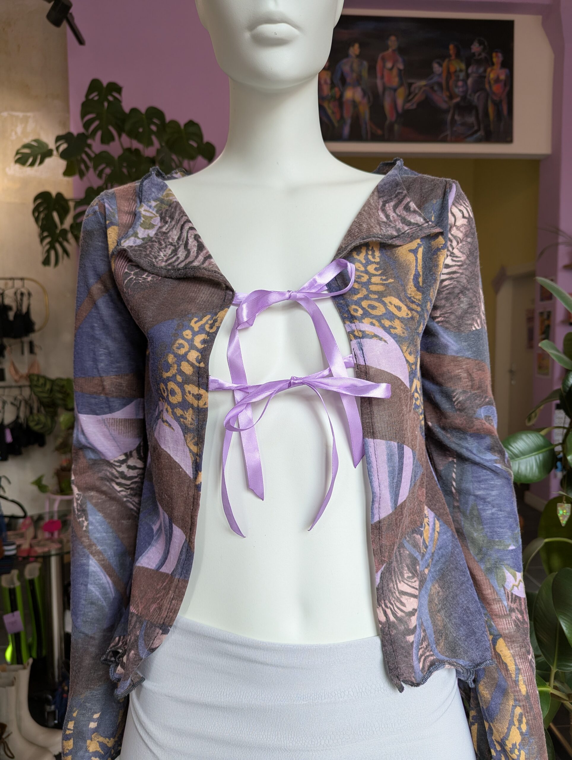 Dieser Patterned Sleeve with Cords bringt dein Outfit auf das nächste Level! Egal ob casual oder Y2K Aesthetic: durch den raffinierten Schnitt lässt sich der Sleeve vielseitig kombinieren. Details wie die Front-Schnüre, die weiten Ärmel und die auslaufenden Nähte sorgen für einen individuellen Look. Der Patterned Sleeve with Cords ist ein Einzelstück, welches aus einem upcycling Projekt entstanden ist und wurde in Berlin handgefertigt.