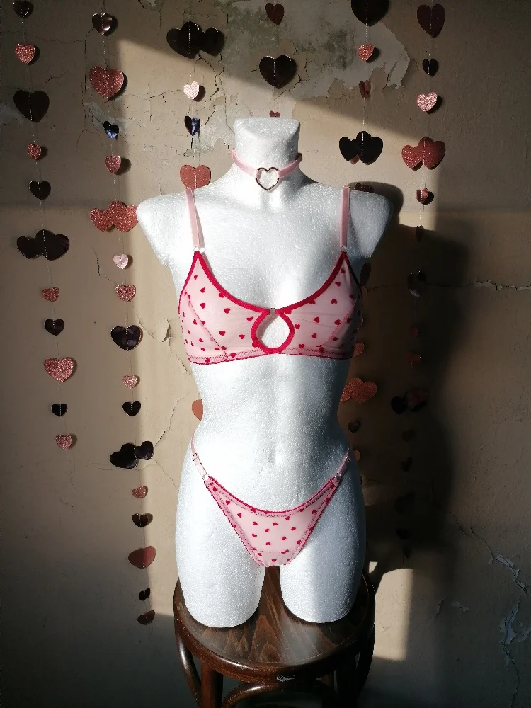 – Unique Design: Red hearts on pink mesh