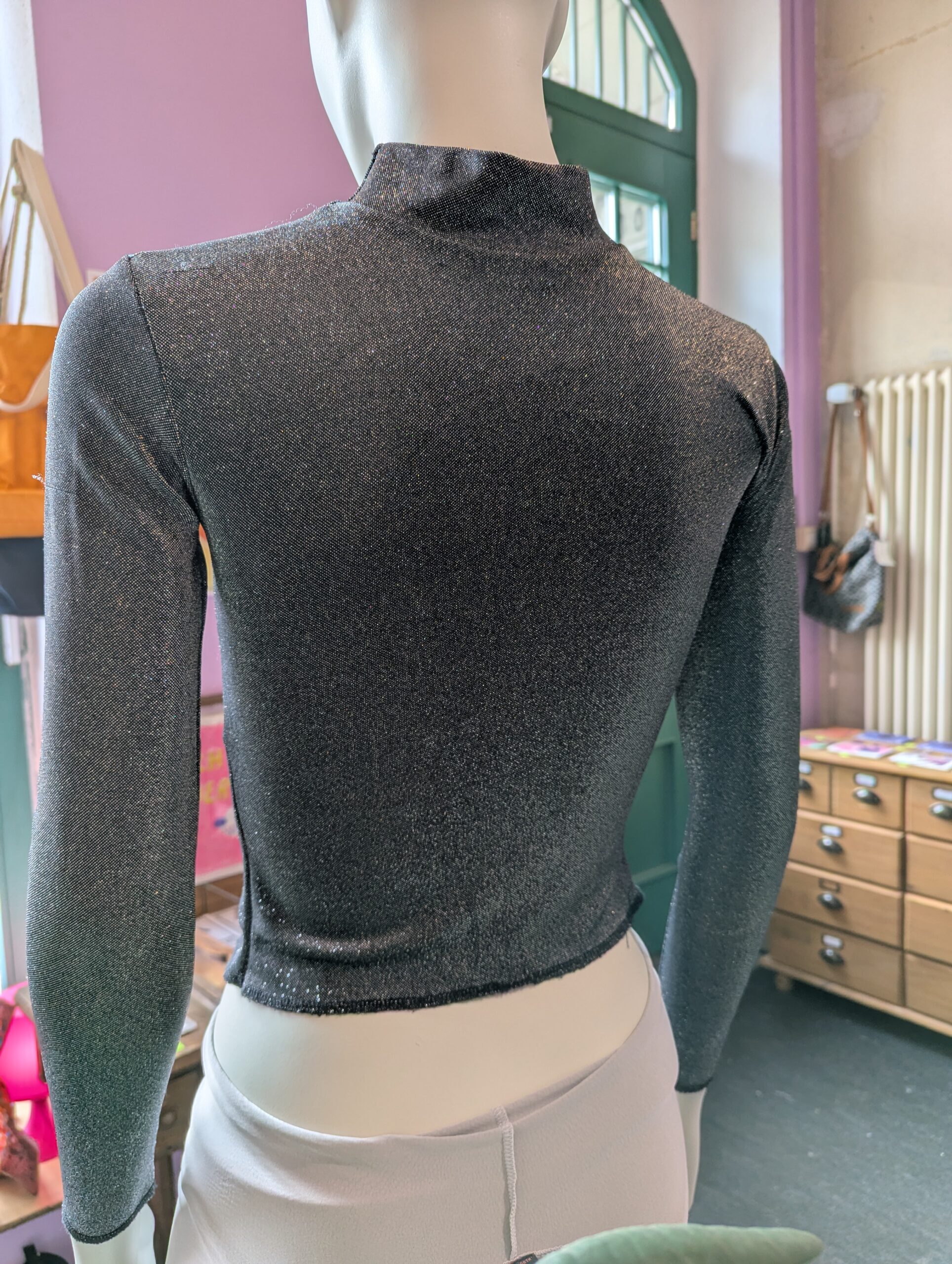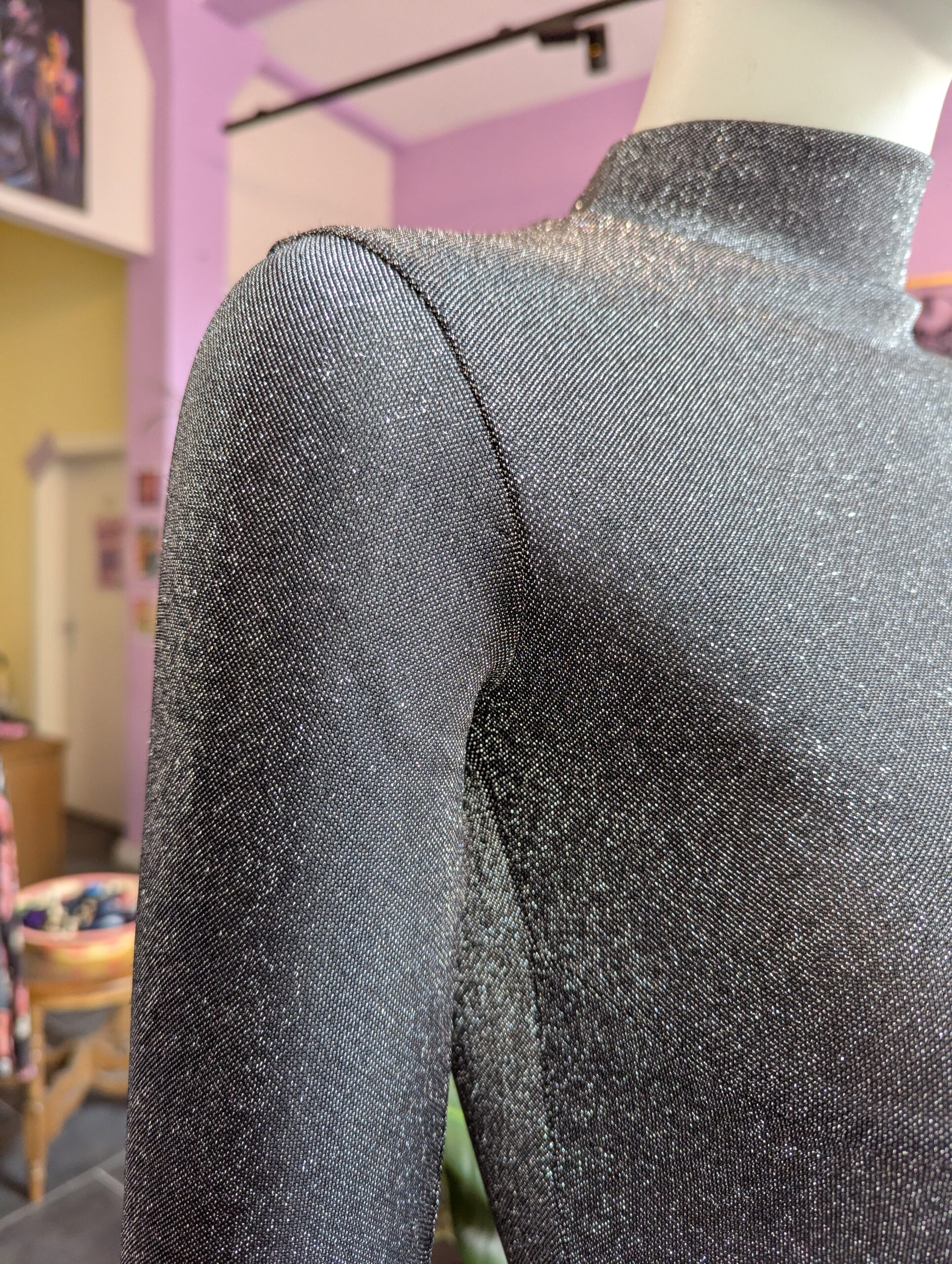 Dieser Silver Shiny Sleeve bringt dein Outfit auf das nächste Level! Egal ob casual oder glamorous: durch den raffinierten Schnitt lässt sich der Sleeve vielseitig kombinieren. Dank der Front- und Underboob-Nähte formt der Sleeve eine wunderschöne Silhouette – ein eleganter Look mit subtilem Sexappeal. Der Silver Shiny Sleeve ist ein Einzelstück, welches aus einem upcycling Projekt entstanden ist und wurde in Berlin handgefertigt.