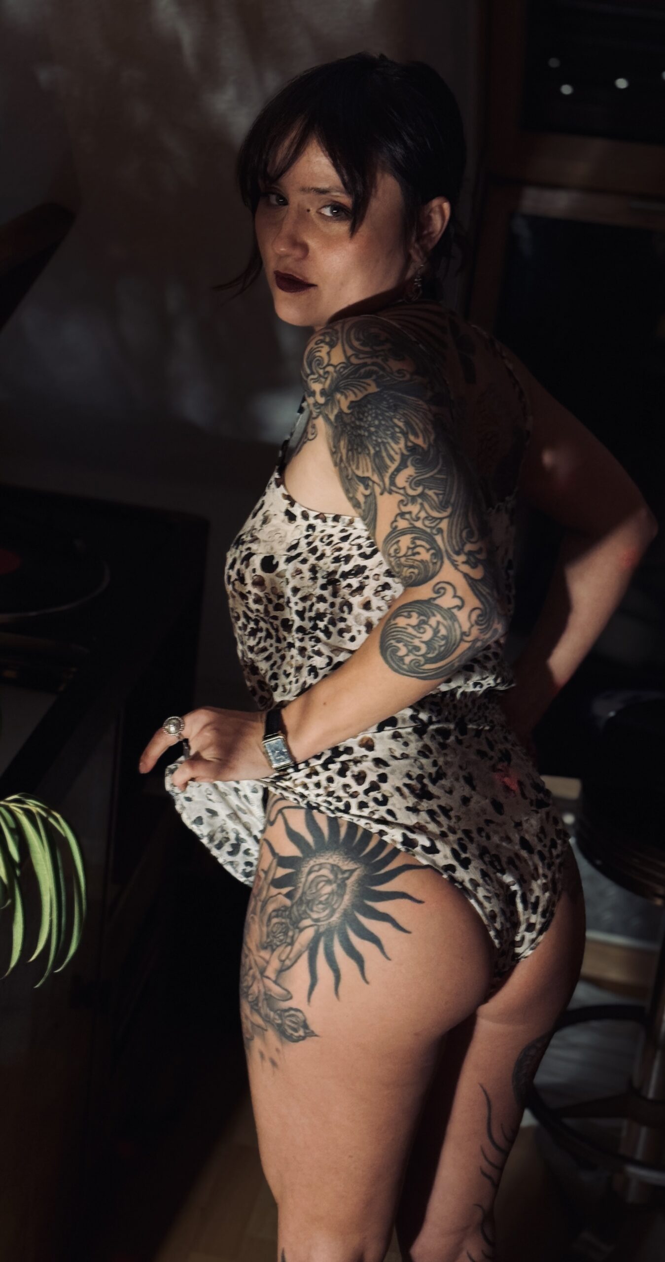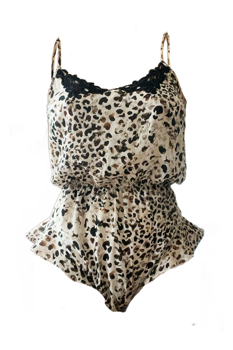 made of sustainable Leopard printed TENCEL™ fabric with an exclusive handmade lace trim from Plauener Spitze. The bodysuit has adjustable straps and a press button close. Handmade in Germany.