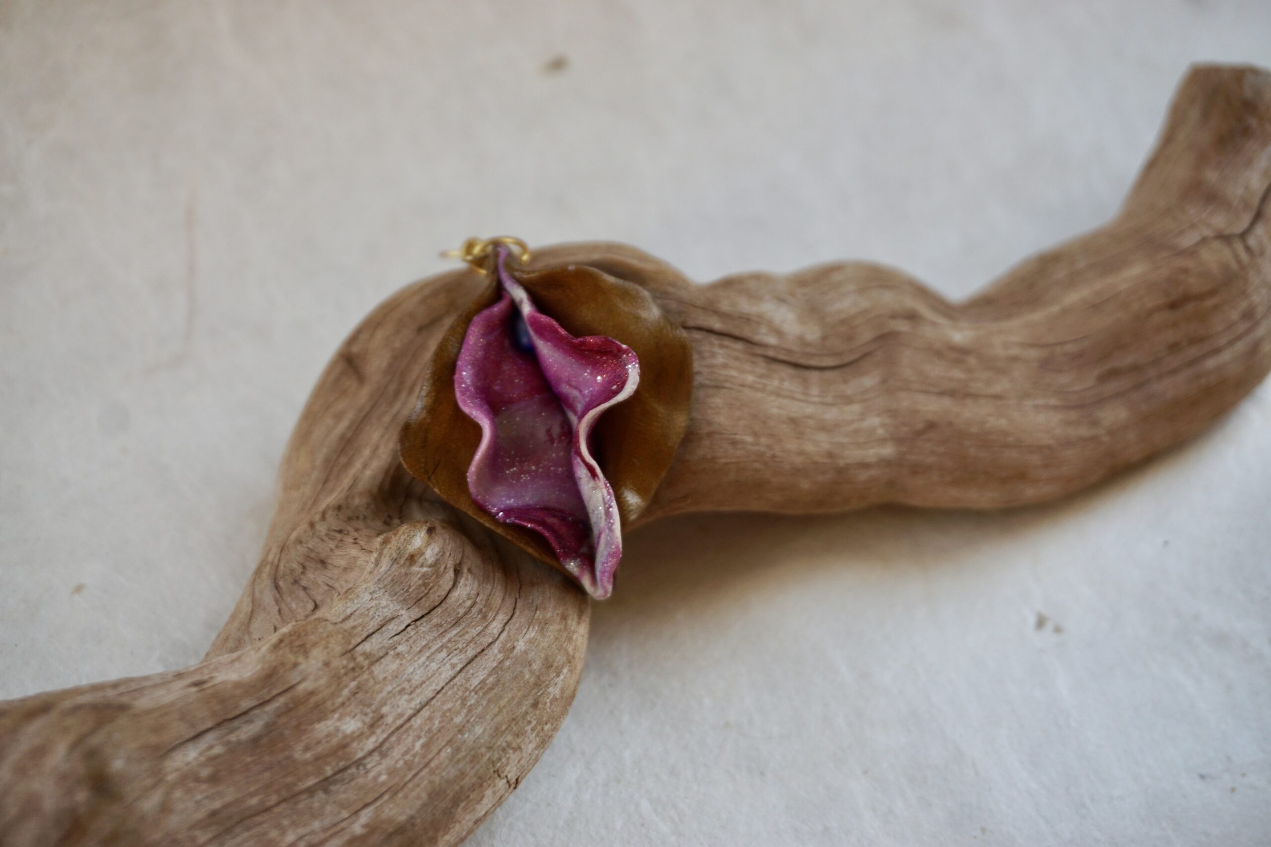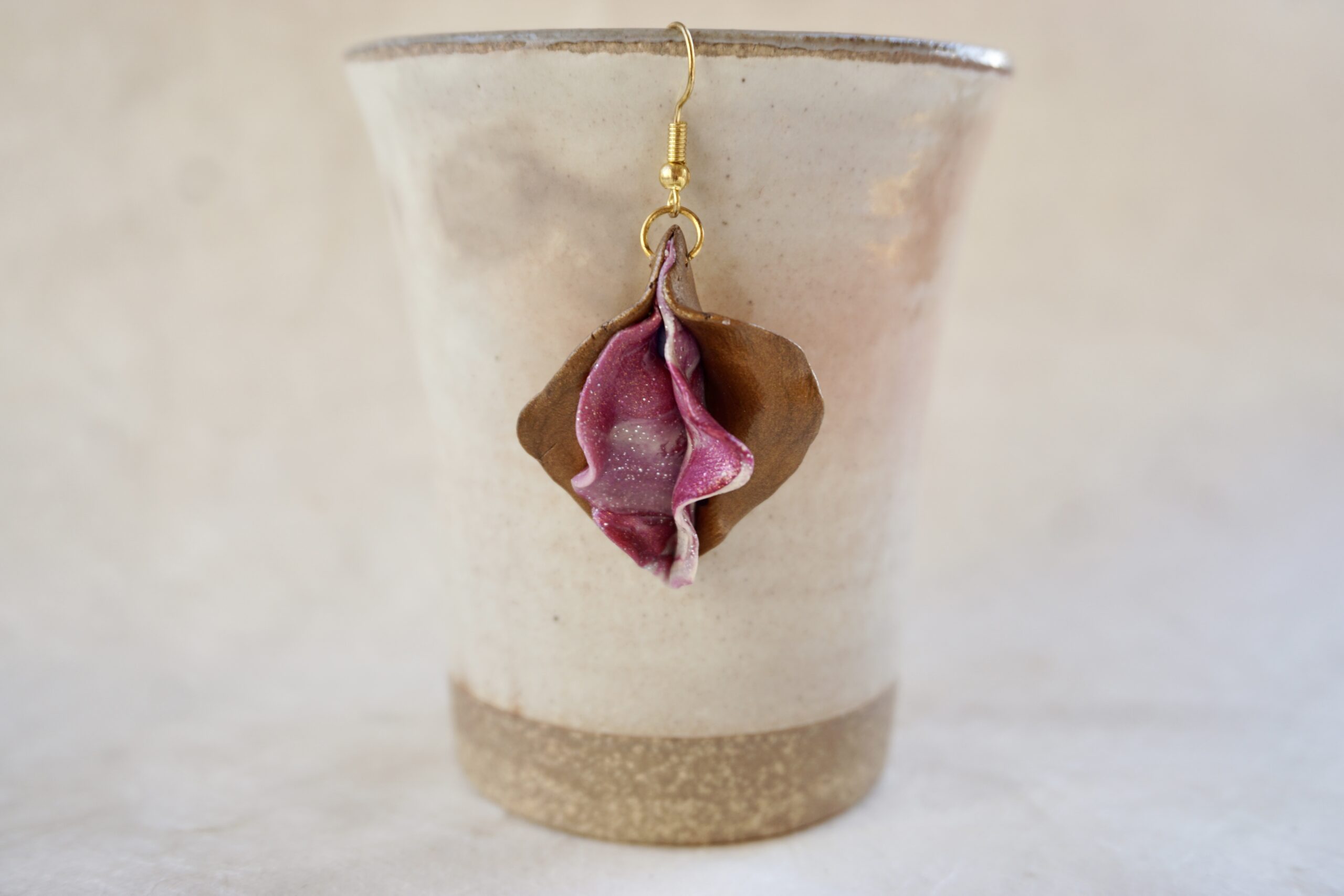 Vulva Earring solo beetroot by VULVADEA is a feminist statement piece to create an empowering look.