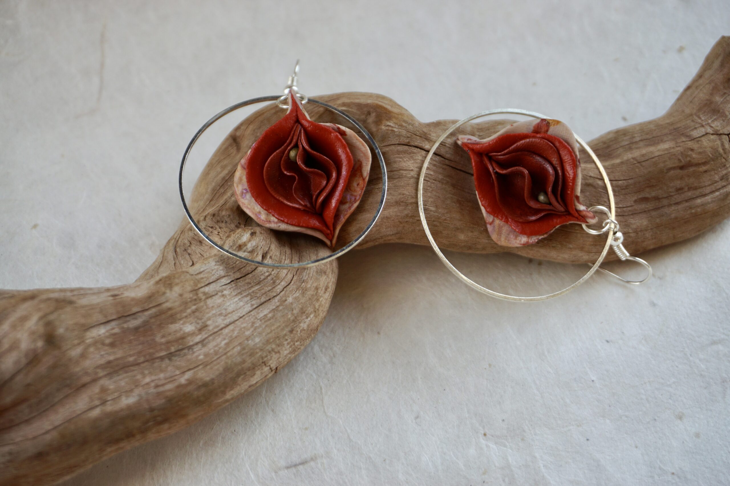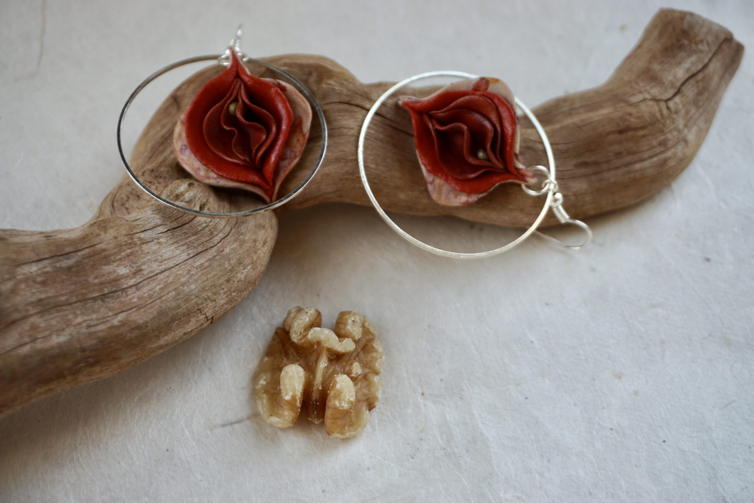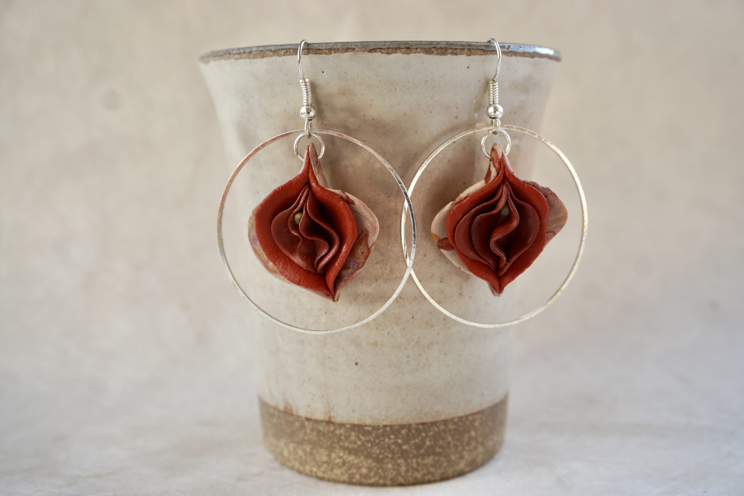 Vulva Earrings sunset by VULVADEA are a feminist statement piece to create an empowering look.