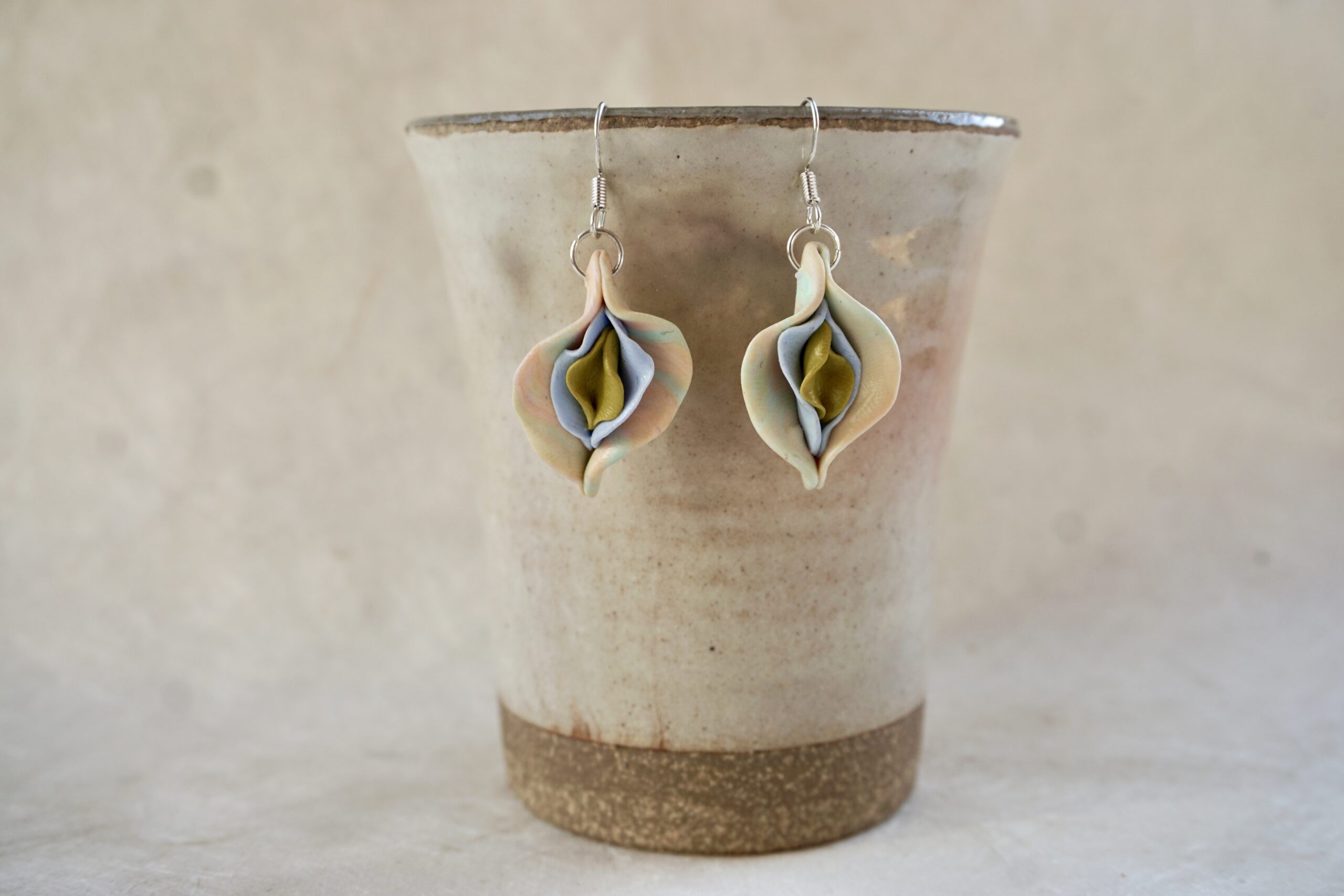 Vulva Earrings pastel tones by VULVADEA are a feminist statement piece to create an empowering look.